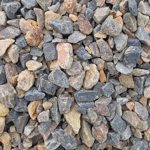 ColoradoLandscape¾" Mountain Granite is a rugged, angular stone with earthy tones of gray, brown, and black, perfect for adding a natural, durable element to landsc...